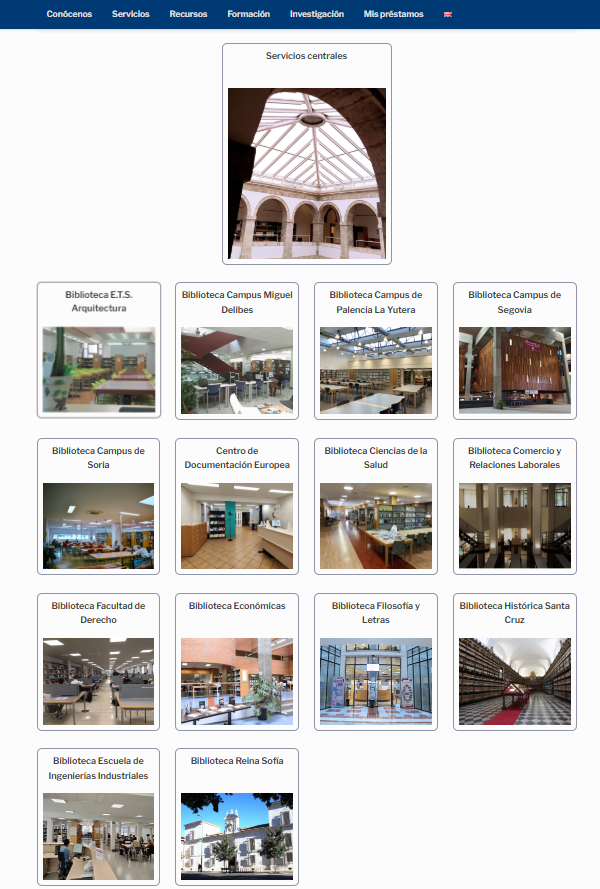 - Esta página se ve ampliamente desarrollada, con las diferentes páginas de las bibliotecas del Servicio: