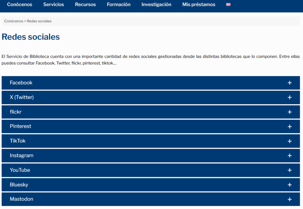 - También contamos con una serie de redes sociales que os van a mantener informado de forma rápida y puntual de acontecimientos acaecidos en las distintas bibliotecas: